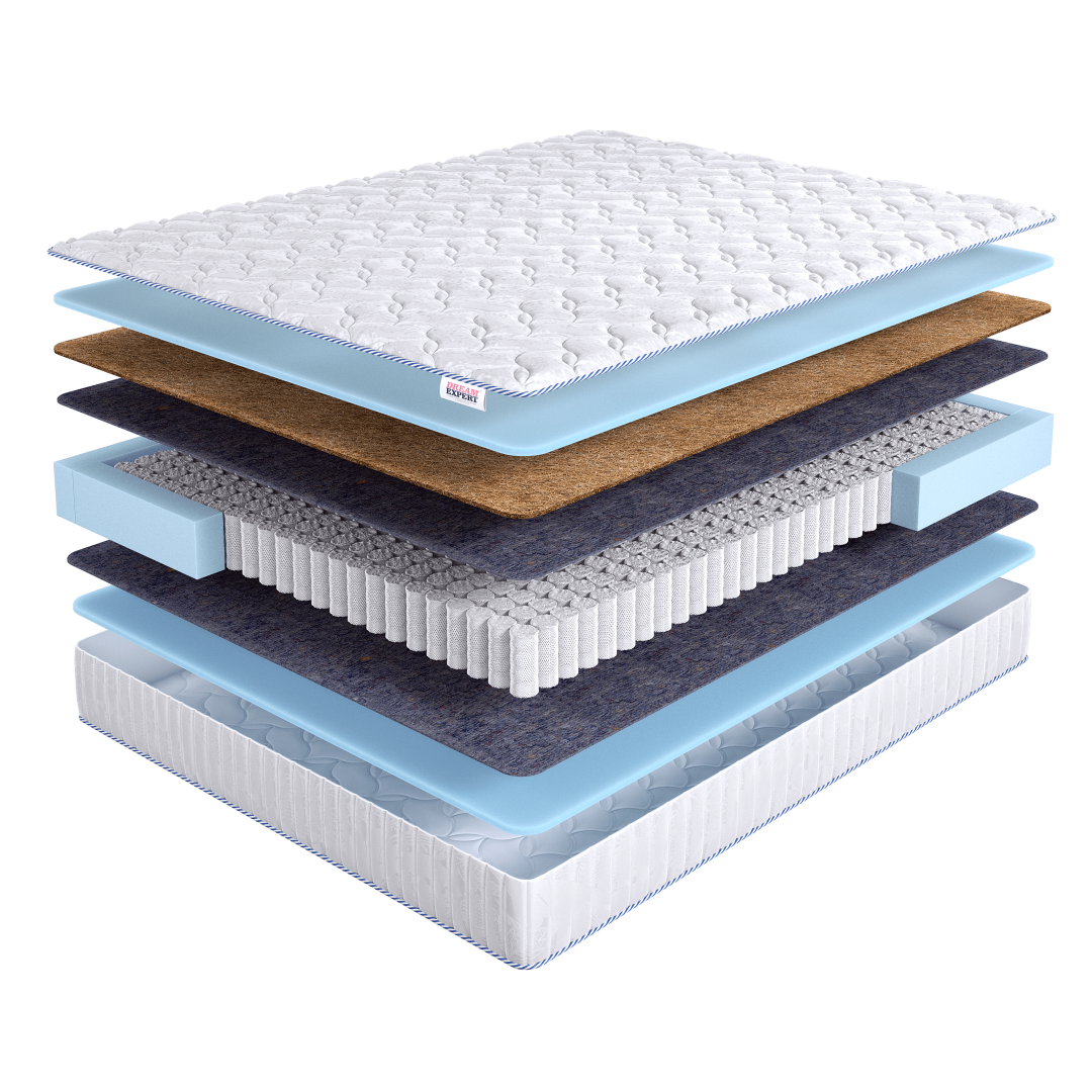Благодаря сочетанию высокоэластичной пены и латексированной кокосовой койры, матрас обладает высоким уровнем прочности и долговечности. С обеих сторон матраса жесткость ниже средней, что обеспечивает выбор наиболее комфортной поверхности для сна.