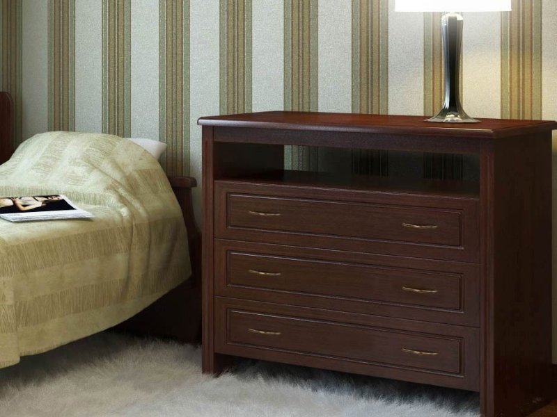 На выбор предлагаются актуальные цвета древесины, в том числе оттенки орех и груша. Купить изделия возможно в стандартной и индивидуальной комплектации. Под заказ изготавливаются комоды с другими параметрами по высоте, с дополнительным ящичком и автодоводчиками закрытия, что несущественно сказывается на цене.