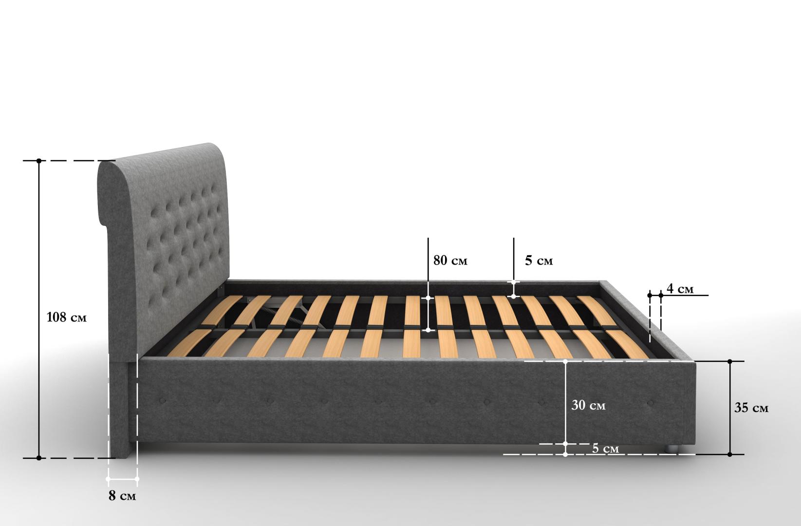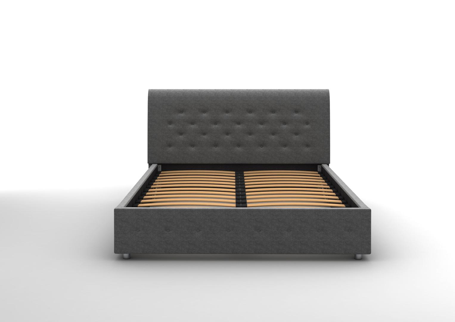 Возможна комплектация с подъёмным механизмом. В такой вариации основание поднимается и открывает доступ к ящику для хранения белья и других вещей. Такая система может заменить небольшой шкаф и решить вопрос с организацией пространства.