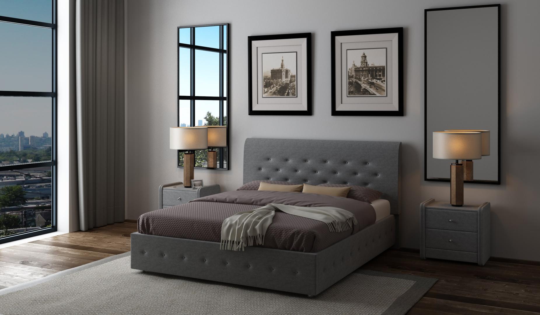 Кровать Premier 1 получила красивый лаконичный дизайн. Модель отличается высоким изголовьем и аккуратной каретной стёжкой. Декоративные пуговицы обтягиваются материалом в тон основной части обивки и устанавливаются в четыре ряда. В результате формируется красивая мягкая спинка. Стёжка из пуговиц также украшает периметр изделия.