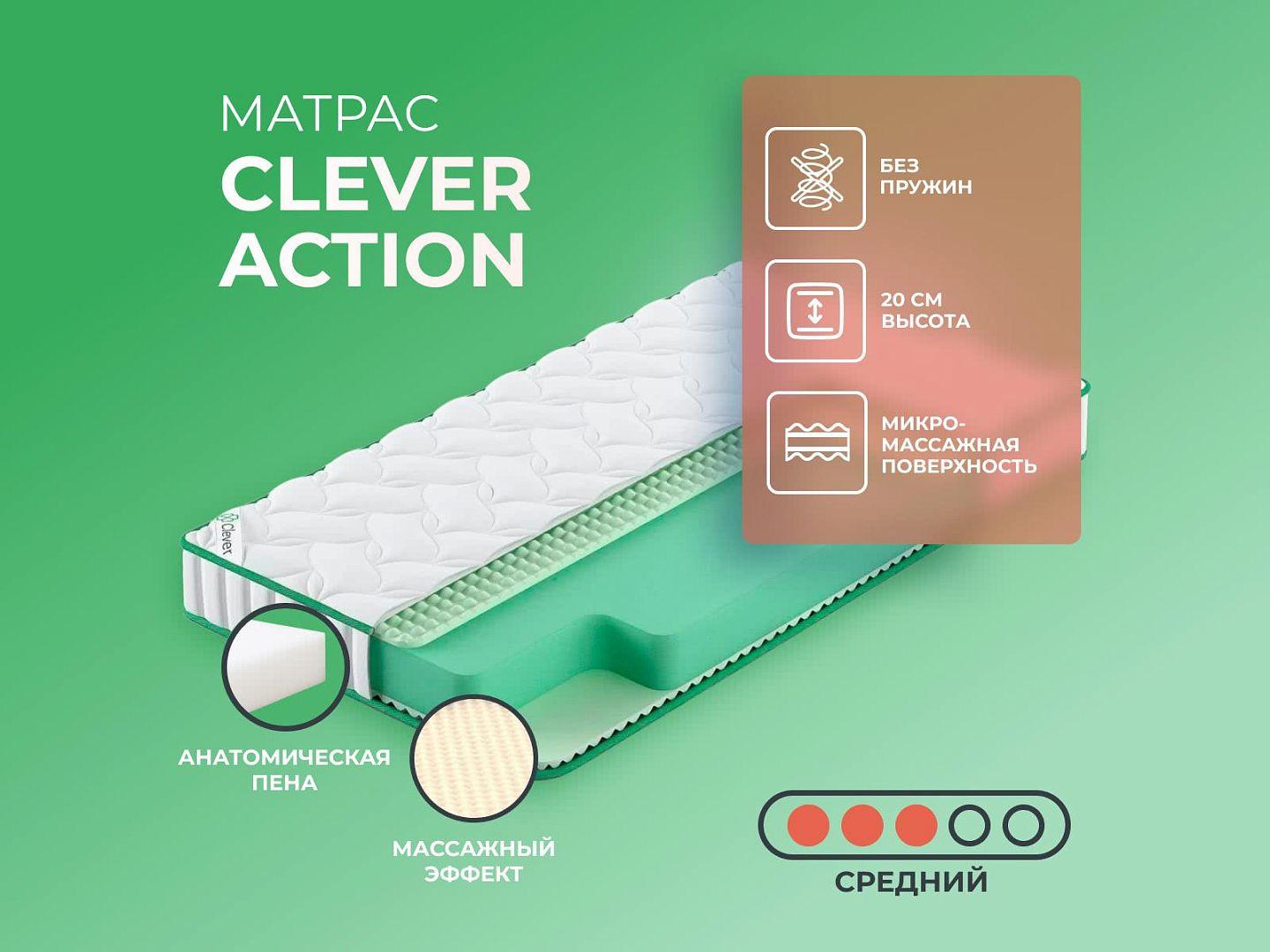 Фабрика Clever получила заслуженную репутацию, благодаря применению новых технологий и безупречному соблюдению стандартов качества. Clever Action — образец продукта с лучшими характеристиками и доступной ценой, матрас создан из дышащих тканей, с эффектом вентиляции.