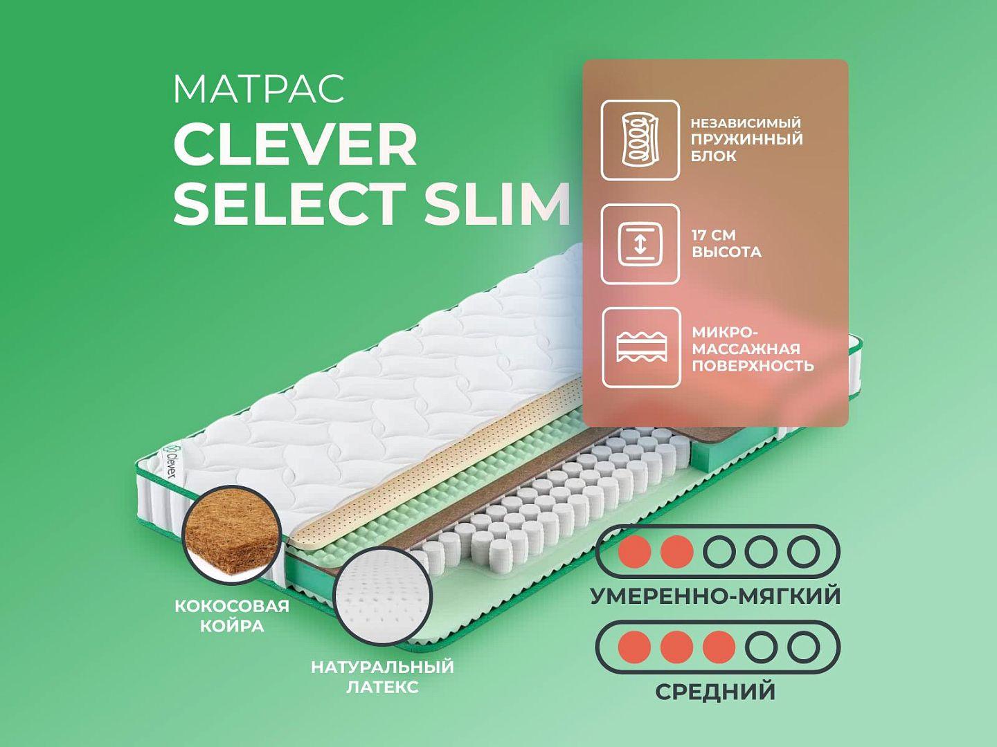 Интернет-магазин Dream-Expert.ru представляет матрас Clever Select Slim 80x195 производства фабрики Clever. Купить данную модель — значит обеспечить себе здоровый позвоночник и комфортный сон на долгие годы.