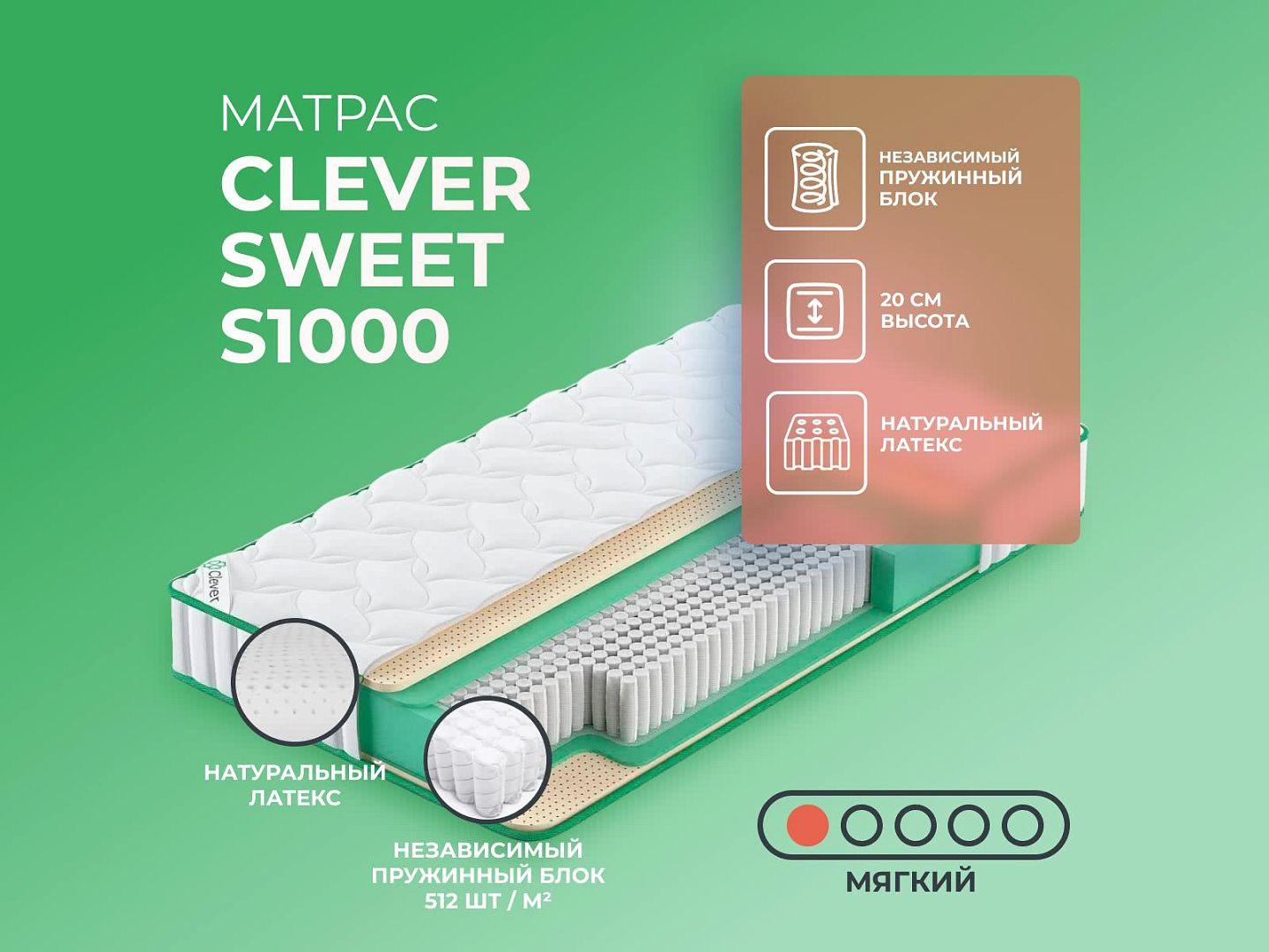 Фабрика Clever получила заслуженную репутацию, благодаря применению новых технологий и безупречному соблюдению стандартов качества. Clever Sweet S1000 — образец продукта с лучшими характеристиками и доступной ценой, матрас создан из дышащих тканей, с эффектом вентиляции.