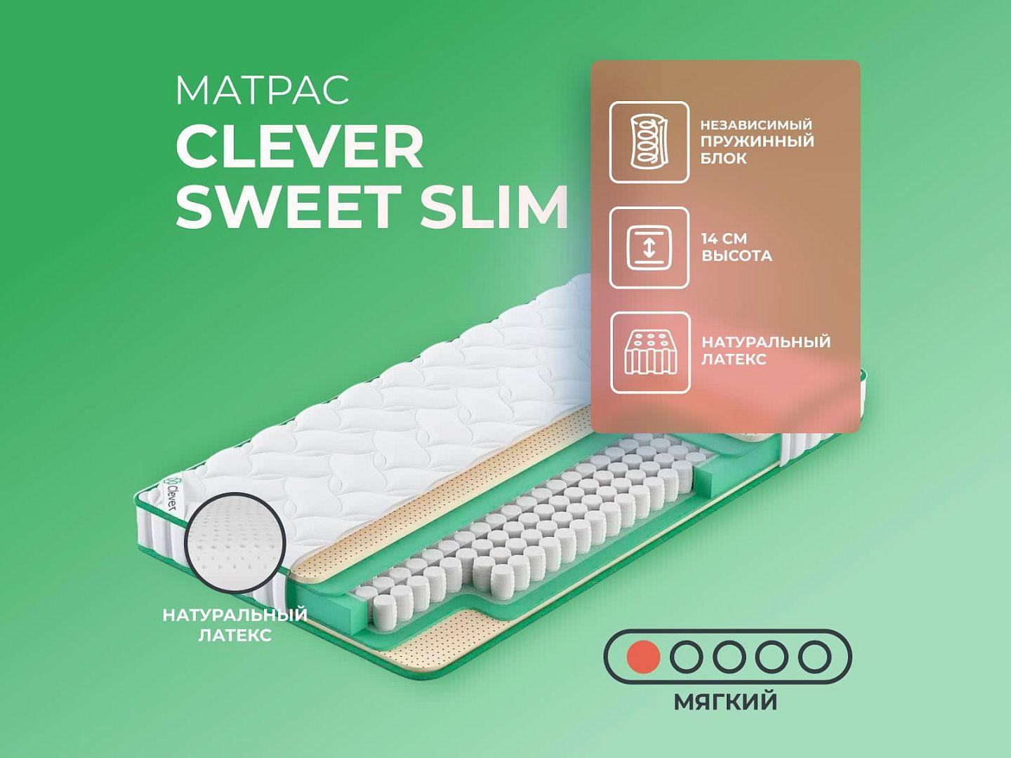 Фабрика Clever получила заслуженную репутацию, благодаря применению новых технологий и безупречному соблюдению стандартов качества. Clever Sweet Slim — образец продукта с лучшими характеристиками и доступной ценой, матрас создан из дышащих тканей, с эффектом вентиляции.