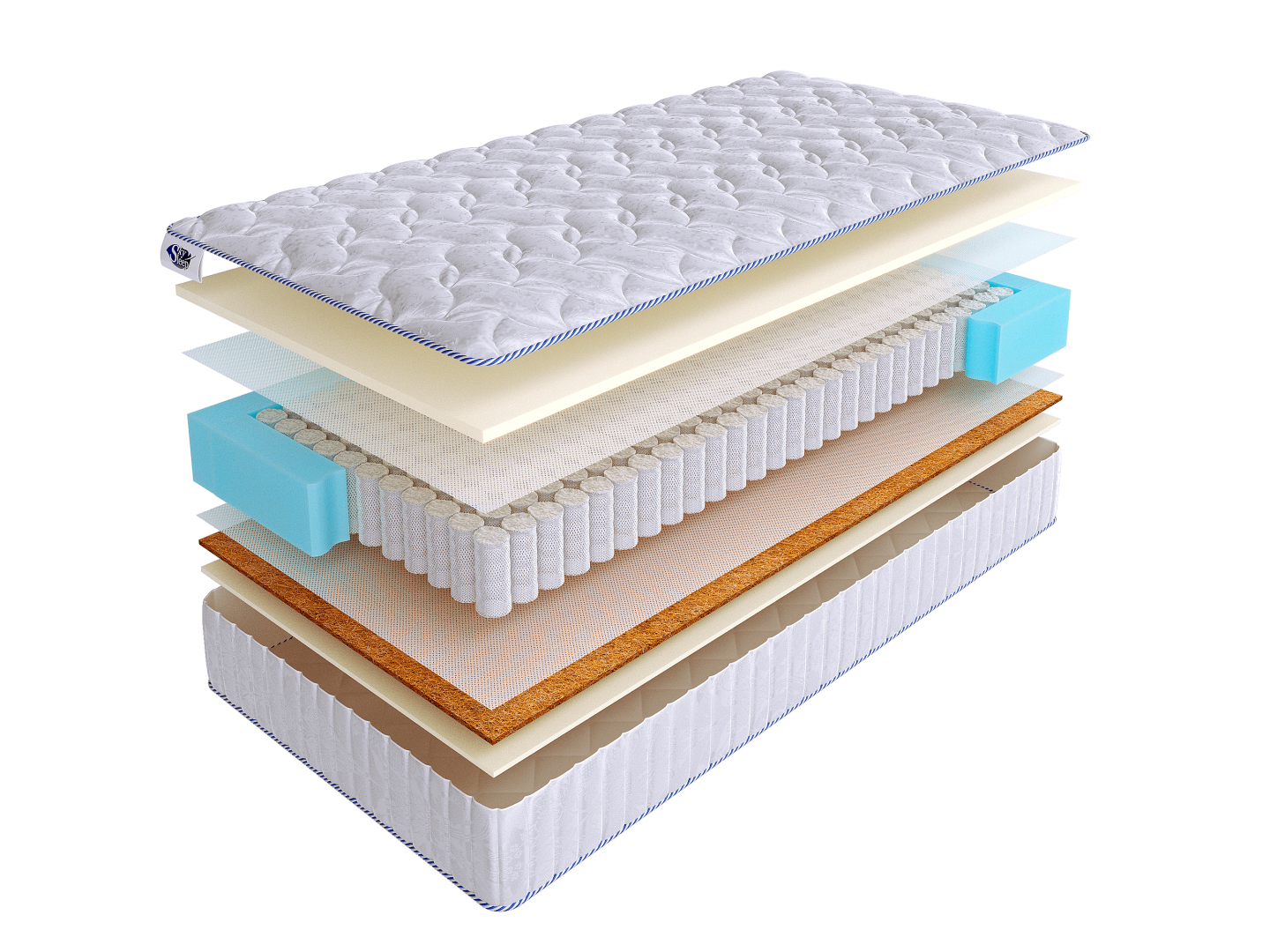 В основе матраса лежит блок независимых пружин S500, обеспечивающий качественную анатомическую поддержку позвоночника во время отдыха.