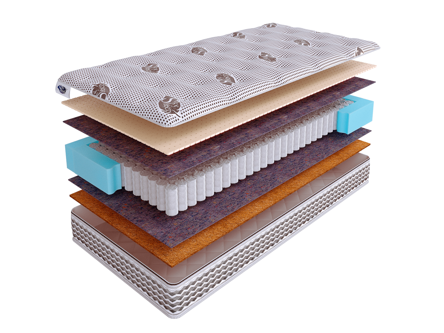 Латекс – мягкий, высокоэластичный материал, обладающий высокими адаптационными свойствами. Он максимально точно подстраивается под изгибы тела спящего человека, создавая оптимальный уровень анатомического эффекта. А кокосовая койра — природный материал, обладающий такими качествами, как прочность, упругость и отличная воздухопроницаемость. В сочетании друг с другом эти наполнители создают удобной спальное место с высоким уровнем комфорта.