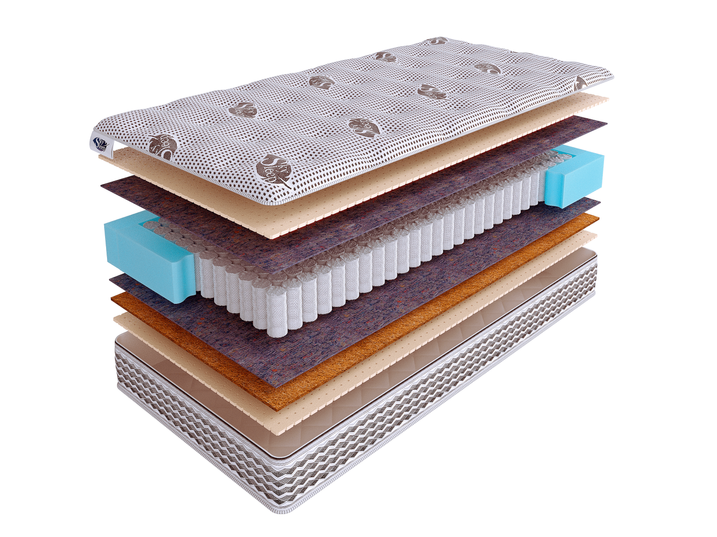 Латекс – мягкий, высокоэластичный материал, обладающий высокими адаптационными свойствами. Он максимально точно подстраивается под изгибы тела спящего человека, создавая оптимальный уровень анатомического эффекта. А кокосовая койра — природный материал, обладающий такими качествами, как прочность, упругость и отличная воздухопроницаемость. В сочетании друг с другом эти наполнители создают удобной спальное место с высоким уровнем комфорта.