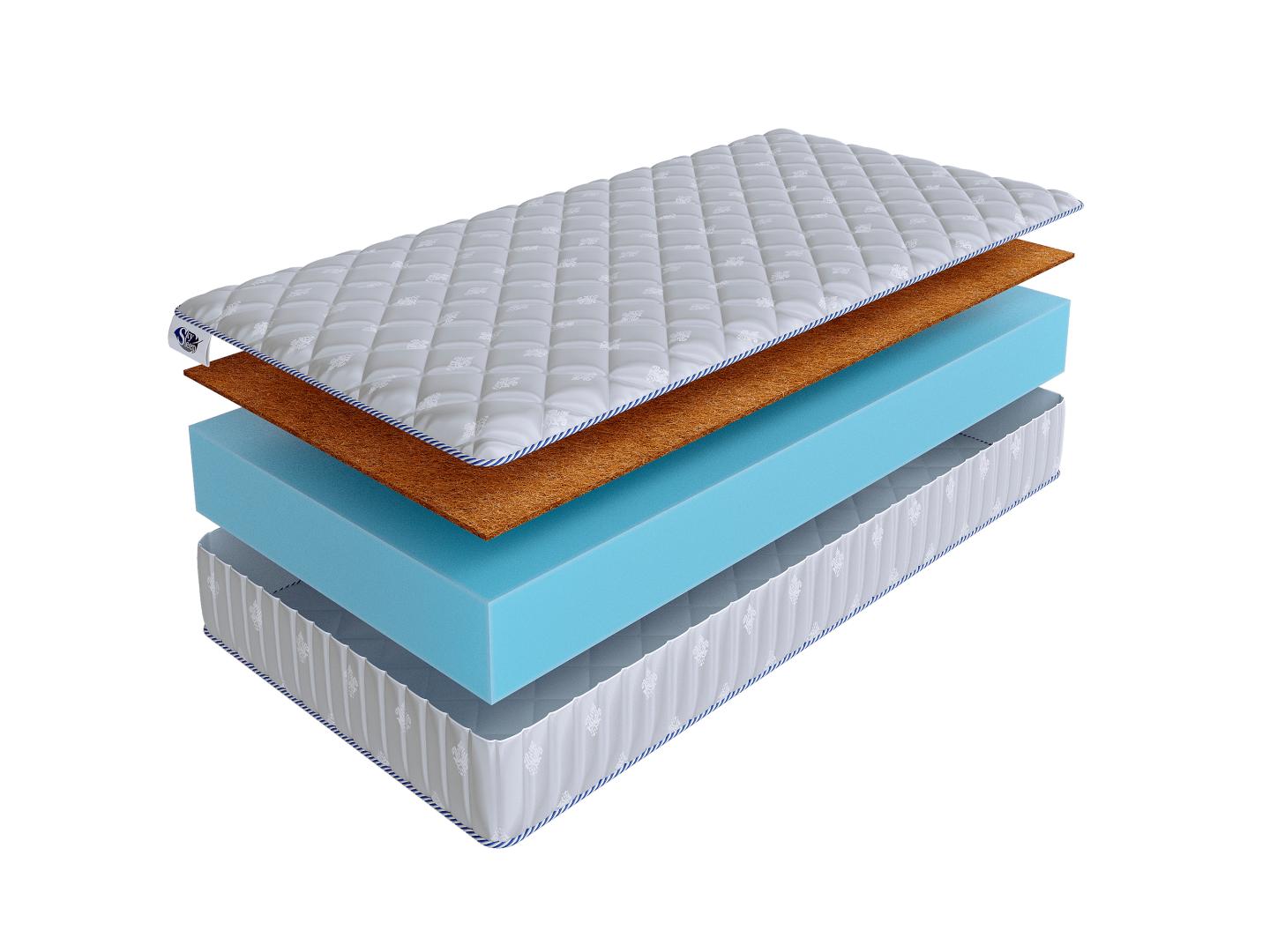 Одна из сторон выполнена из листа кокосовой койры, придающей матрасу умеренную жесткость и делающей его более ортопедичным.