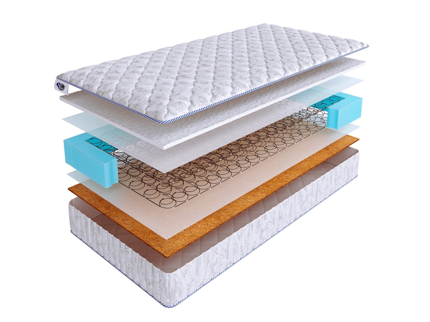 Чехол матраса выполнен из хлопкового жаккарда, простеганного на 100 г. синтепона.