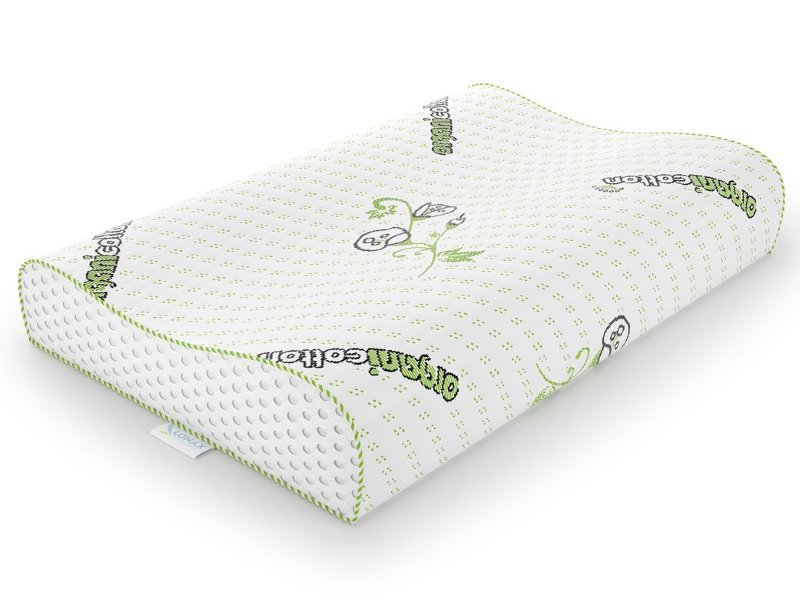 Оптимальная высота 12 см обеспечивает идеальное положение шейных позвонков во время сна. Дополнительный комфорт создается за счет воздухопроницаемых свойств наполнителя. Человеку комфортно в любое время года, так как сохраняется естественный температурно-тепловой режим. Чехол выполнен из приятного на ощупь полиэстер, органический хлопок.