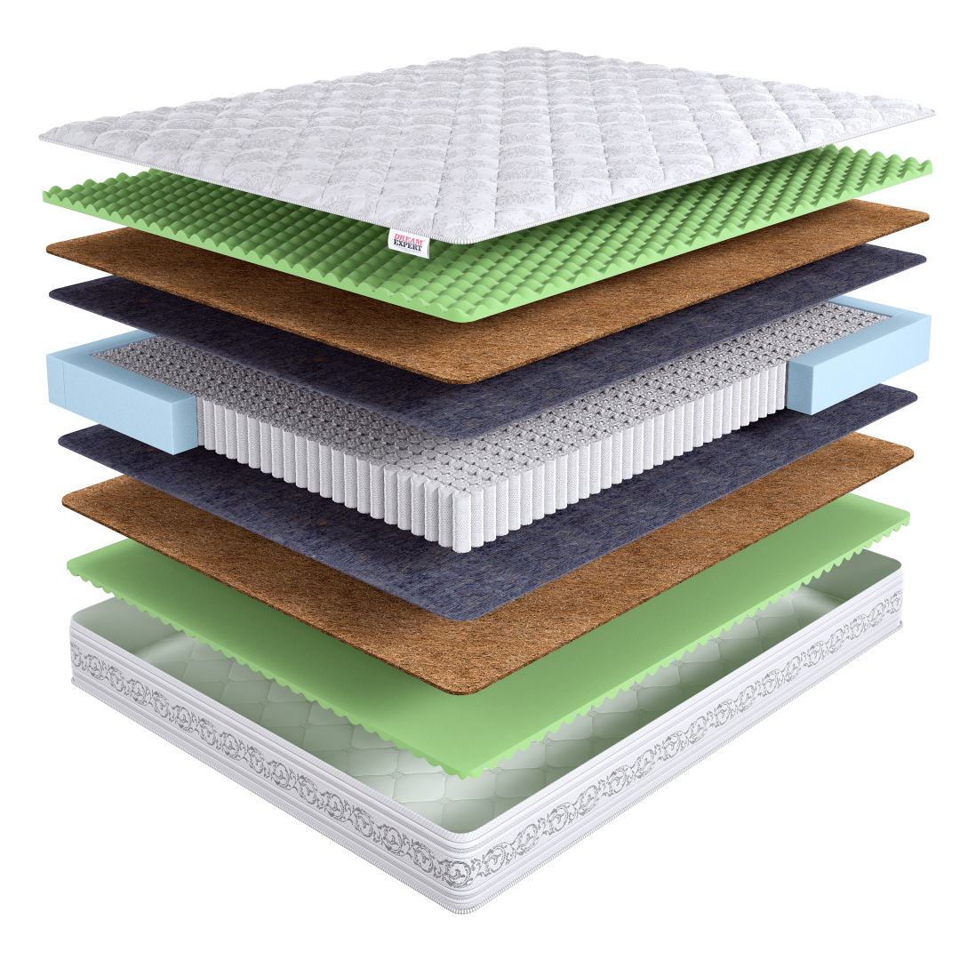 Сочетание латексированной кокосовой койры и искусственного латекса придает матрасу необходимую жесткость выше средней, что обеспечивает комфортное положение позвоночника. Конволюторная резка обеспечивает микромассажный эффект, способствующий улучшению кровообращения и снятию напряжения.