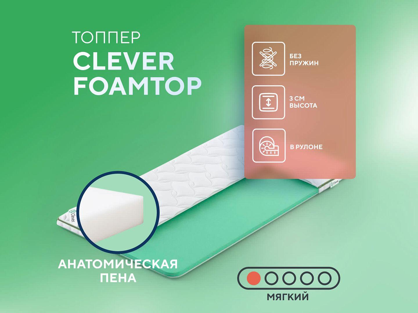 Фабрика Clever получила заслуженную репутацию, благодаря применению новых технологий и безупречному соблюдению стандартов качества. Топпер Clever FoamTop — образец продукта с лучшими характеристиками и доступной ценой, матрас создан из дышащих тканей, с эффектом вентиляции.