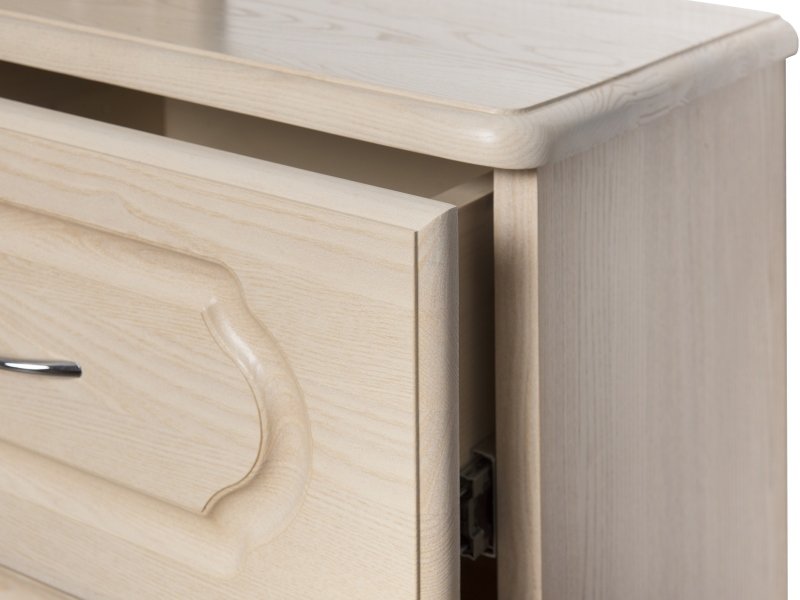 Фасадная часть прикроватной тумбы изготовлена из массива ясеня. Изделие привлекает практичностью и современной стилистикой. Выкатной ящик бесшумно открывается, благодаря телескопическим направляющим. Стильный дизайн подчеркивает натуральную структуру дерева.