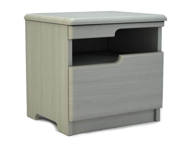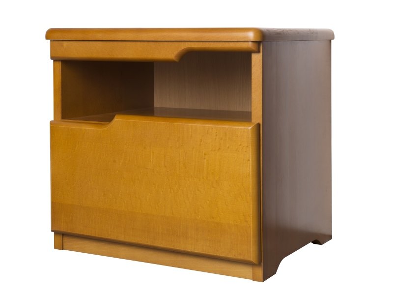 Фасадная часть прикроватной тумбы изготовлена из массива ясеня. Изделие привлекает практичностью и современной стилистикой. Выкатной ящик бесшумно открывается, благодаря телескопическим направляющим. Стильный дизайн подчеркивает натуральную структуру дерева.